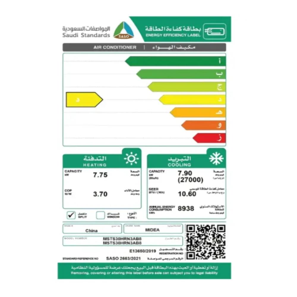 مواصفات مكيف اسبليت ميديا سوبر كول 27000 وحدة - حار/بارد MSTS30HRNAG15 :